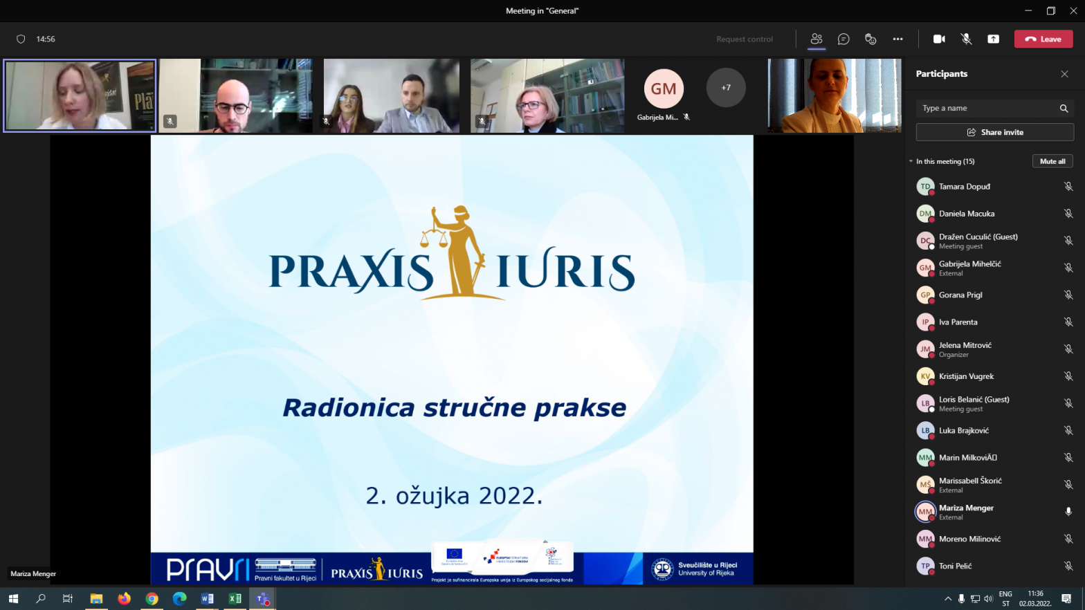 Članovi projekta Praxis Iuris održali su 2. ožujka 2022. online radionicu za studente Integriranog studija. Na radionici su studentima predstavljene dosadašnje projektne aktivnosti s osobitim naglaskom na rad Pravne klinike. U tom je smislu studentima dan kratki osvrt na broj zaprimljenih i obrađenih predmeta s obzirom na područje prava kojem pripadaju. Nakon održane radionice nekoliko […]