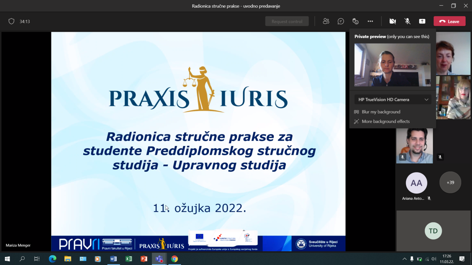 Članovi projekta Praxis Iuris održali su 11. ožujka 2022. online radionicu za studente Preddiplomskog stručnog studija – Upravnog studija. Radionica je, kao njegov poseban modul, održana u sklopu kolegija Stručna praksa čiji su nositelji izv. prof. dr. sc. Sandra Laleta i izv. prof. dr. sc. Vanja Smokvina s Katedre za radno i socijalno pravo, a radionici […]